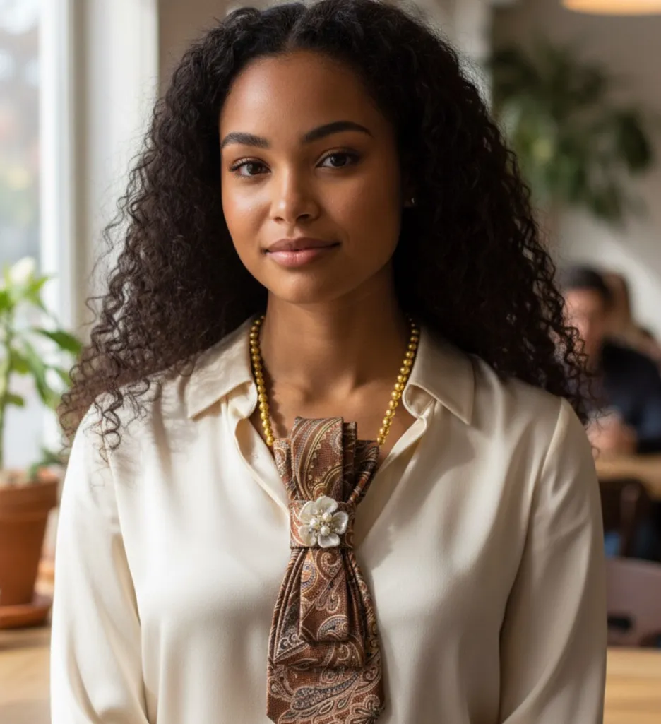 “Dainty Dapper”Elegant burnt orangish brown parsley necktie Necklace with brooch Orange - $30 - From linda