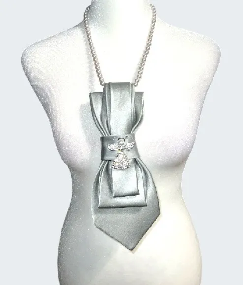 “Dainty Dapper”Elegant Silver necktie necklace with angel brooch - $29 - From linda