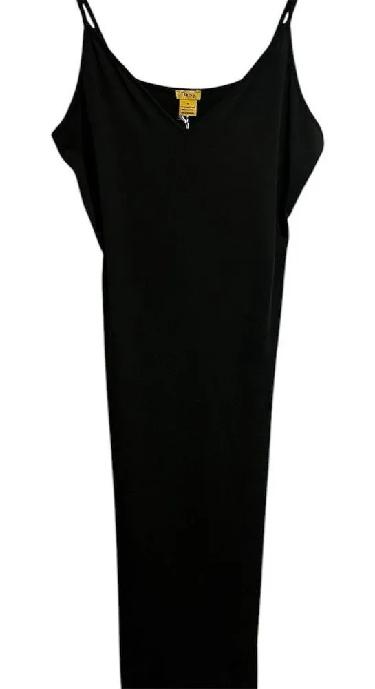 In brand new with tags condition. There are no issues or flaws. Top of shoulder strap to bottom hem measurement is approximately 54 inches. Armpit to armpit measurement is approximately 18.5 inches. Waist measurement is approximately 33 inches. Elevate your wardrobe with this stunning Daisy midi dress, designed to make you feel effortlessly chic. The sleek black silhouette, crafted from a comfortable blend of polyester and spandex, hugs your curves in all the right places. The V-neckline and adjustable straps add a touch of elegance, perfect for any fall occasion. With its pullover style, this dress offers both ease and sophistication. Machine washable for your convenience, it's a must-have for any fashion-forward woman. New with tags (NWT). Keywords: Daisy dress, black midi dress, women's fashion, V-neck, adjustable straps, fall dress, sleek silhouette, pullover dress, machine washable, new with tags. Brand: Daisy Size: 1X Style: DS8514X Dress length: Midi Color: Black Department: Women Material: Polyester, Spandex Neckline: V-Neck Season: Fall Closure: Pullover Features: Adjustable Straps, Sleek Silhouette Country/region of manufacture: China Garment care: Machine Washable Item#7007