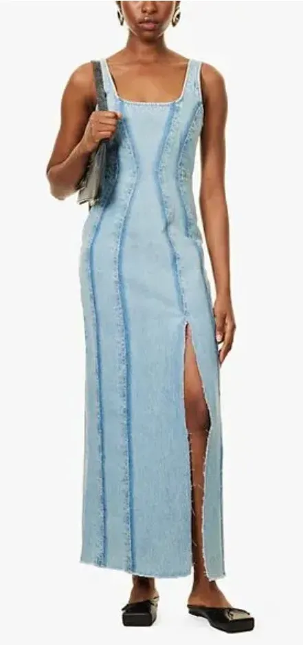Dala On Tap Midi Paneled Denim Dress - New w/ Tags Size - 24 Color - Canyon (Blue) -This Dala midi dress is crafted from 100% organic cotton denim -It features a scoop neck, sleeveless design, and a slim fit -The dress has a back zip fastening, paneled construction, a split at the front, and a raw hem -It is machine washable and true to size -The fabric is midweight and non-stretch Approx. Measurement - laying flat, not stretched out: AP to AP - 14: Waist - 12 1/4" Shoulder to Bottom Hem - 56" Fabric: 100% Organic Cotton Retail: $300 *Dress comes as shown in the photos - Please review all pictures in the listing before purchase. *Perfect Condition! New w/ Tags Ships Fast
