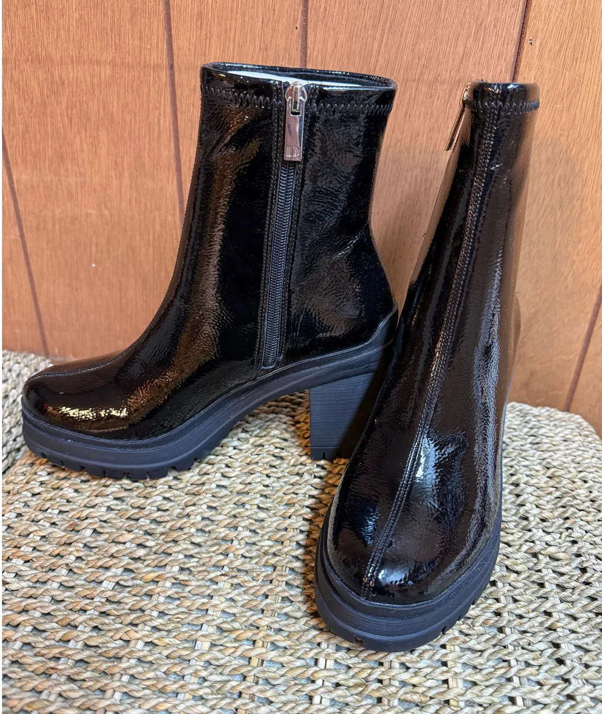 D’amelio Womens 8.5 Black Faux Patent Leather Chunky Chelsea Boots Zipper Grunge - $45 - From Alethia