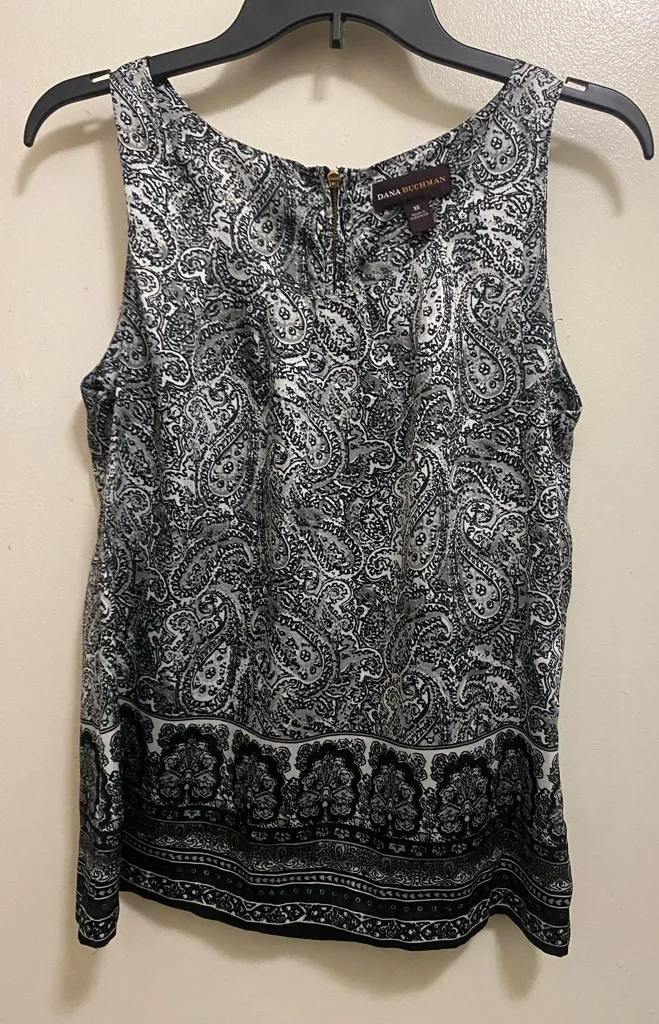 Dana Buchman Womens Tank Top XS Black & White Paisley Boho Bohemian Print - $12 - From Terri