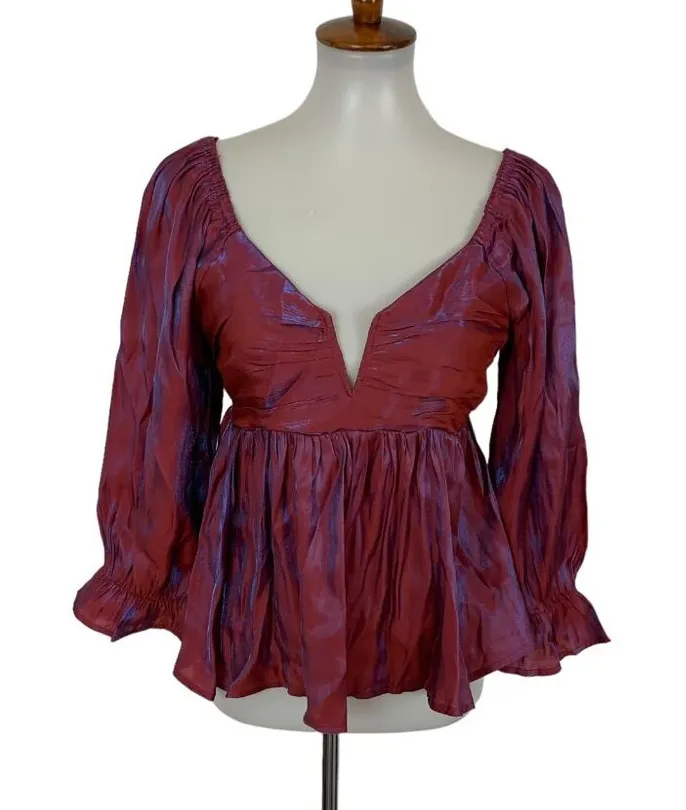 Dang Sassy Boutique Purple Red Peplum Blouse L Deep V Neck Long Sleeve Party Top Size L - $18 - From Rodica