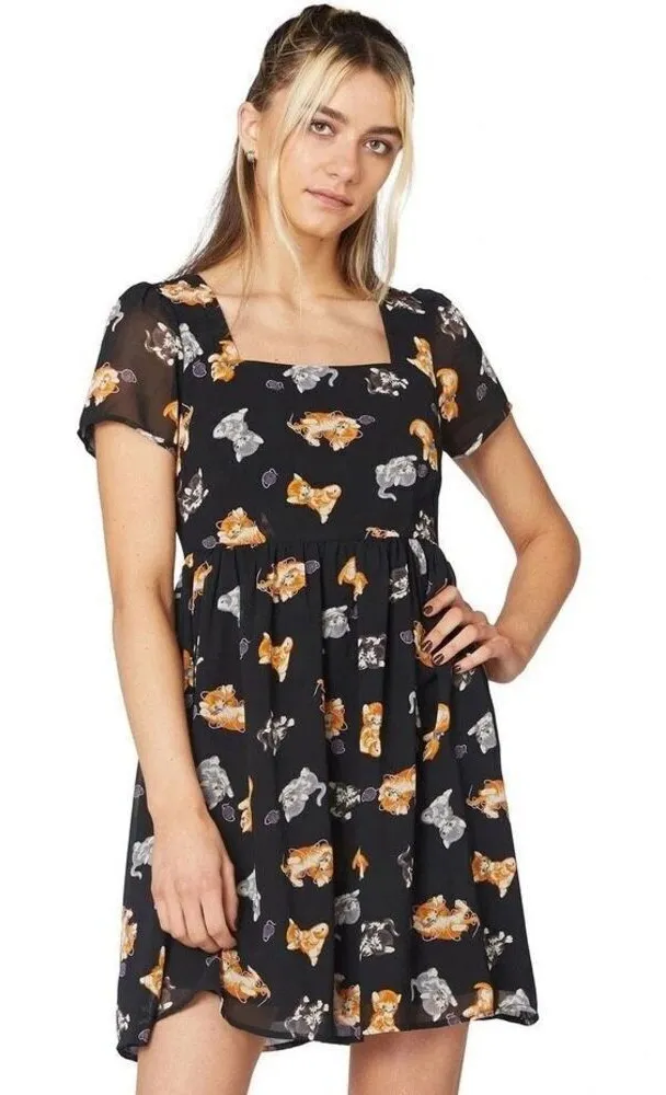 ✨Dangerfield 90's Style Kitten Sheer Dress Black Fabrication: 100% Polyester Care and Use Instructions: Cold Machine Wash. Do Not Bleach Or Soak. Features: Regular Fit Slight Stretch 90's printed sheer dress Square front & back neckline Soft sheer georgette fabric Functional back tie Cute 90's cat print Back zip opening Fabric & Care: 100% polyester. Cold machine wash. Size: 6 Retails: $98 Approximate measurements: Armpit to armpit: 16.5” Length: 35” BIN 30✨