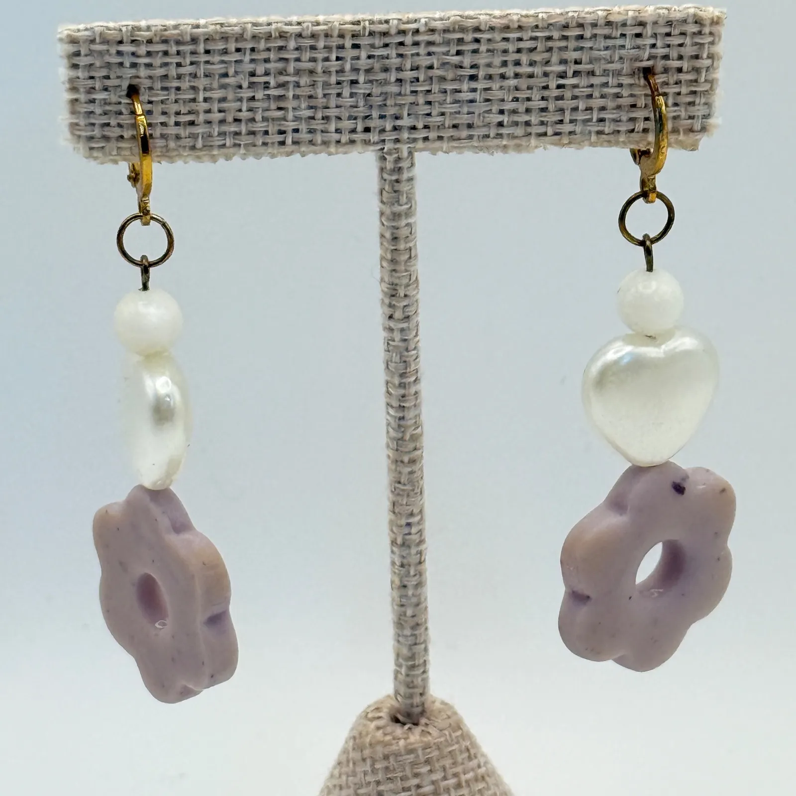 Dangle Earrings Pearl Heart Flower Lavender Gold Tone Jewelry Measurements: • Length: 2.75 inches... Show more