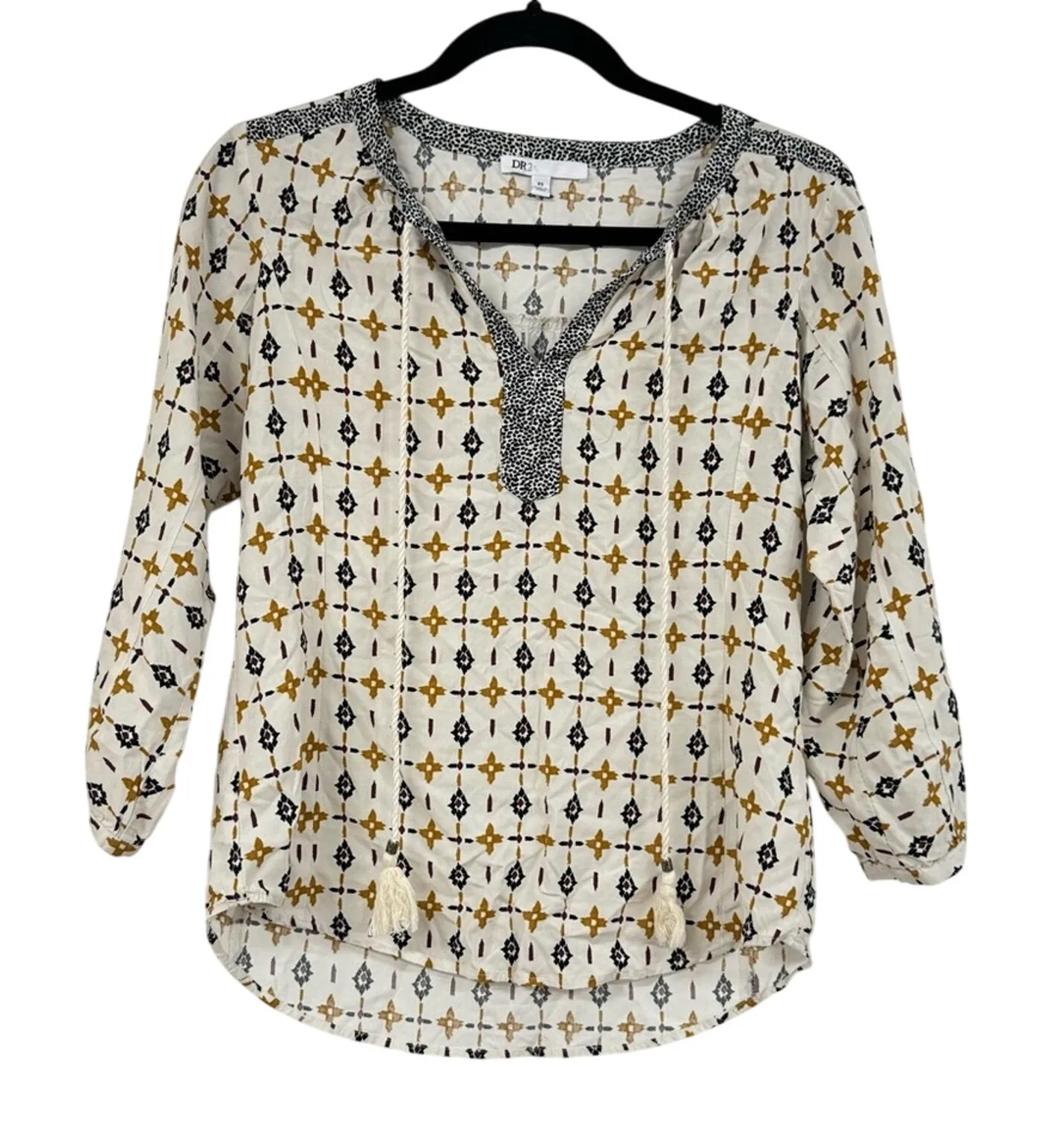 Daniel Rainn DR2 Mustard Yellow & Black Boho Tassel Blouse Womens XS Shirt - $23 - From Lisa