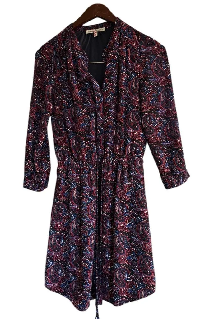 Daniel Rainn paisley Dress elastic waist blouson look drawstring waist size XS Underarm across 17”... Show more