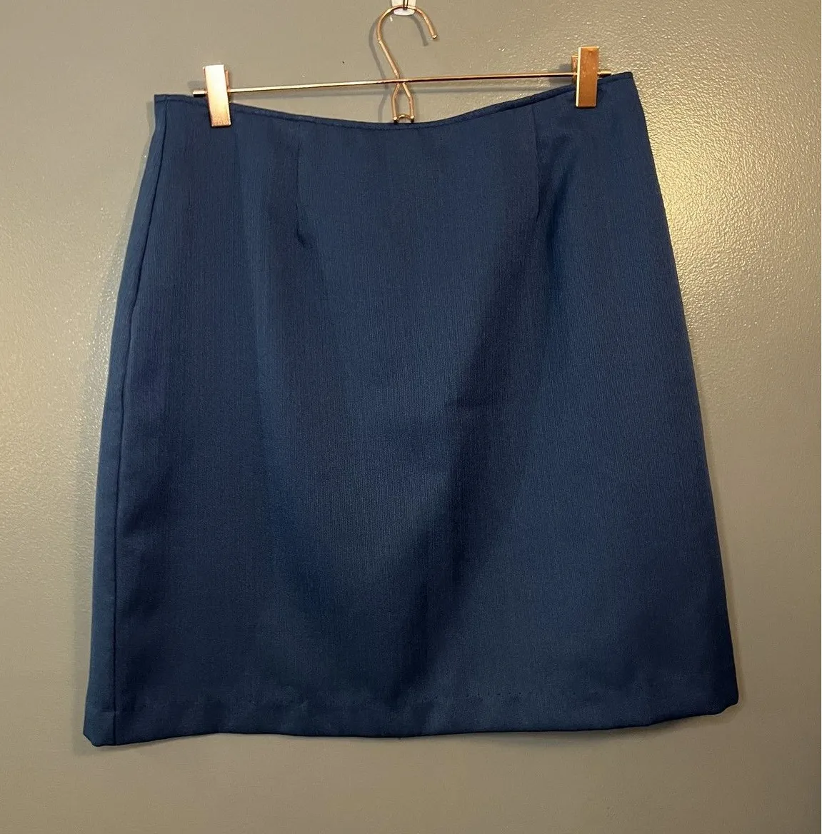 Condition: Gently worn, no visible flaws, clean and well maintained Material: 100% polyester Color: Navy blue Back zip closure and rear vent for comfortable movement Tag size: 16 (Womens) Made in Mexico Style: P40560 | Lot: 19577 Perfect for office, business, or formal occasions Waist 33" Length 21" bin 105