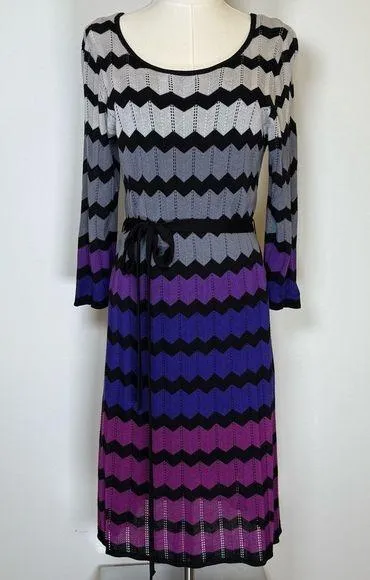 Danny and Nicole Chevron Print Knit Dress Women’s Size Large. Purple, black and gray jewel tone colo... Show more
