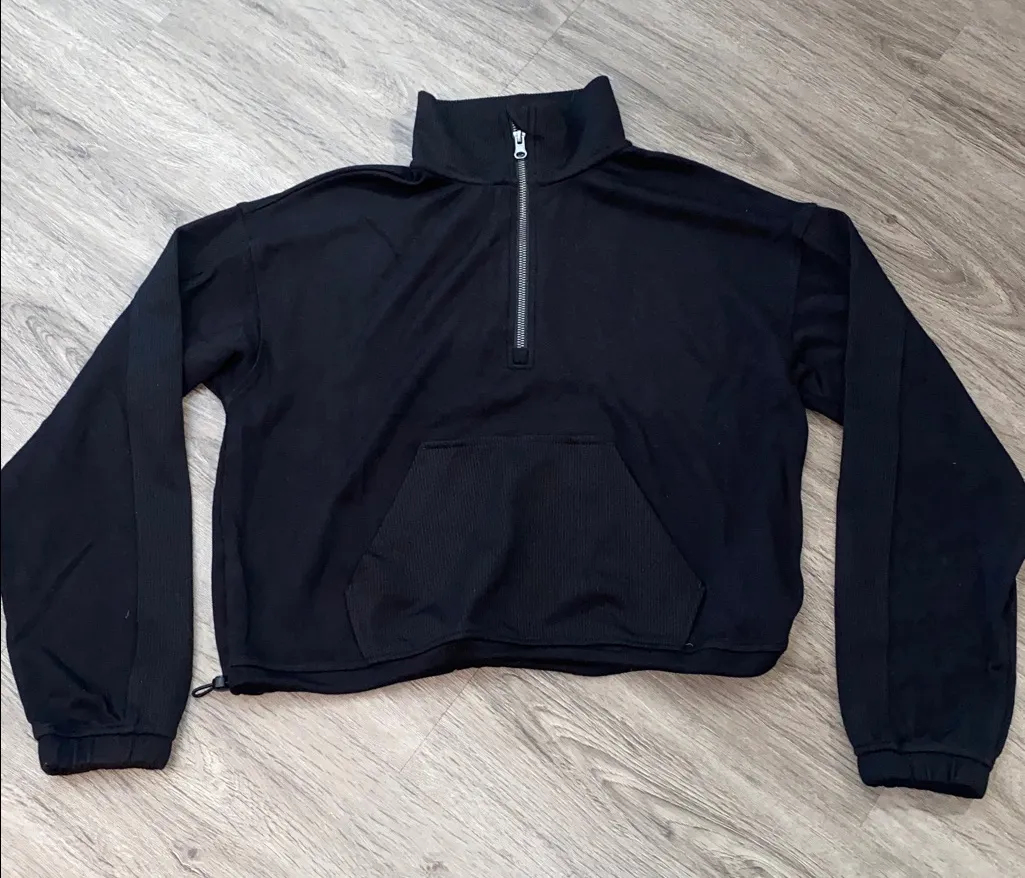 Like new Elegant black ribbed top with a half zip design. Ideal for versatile styling.