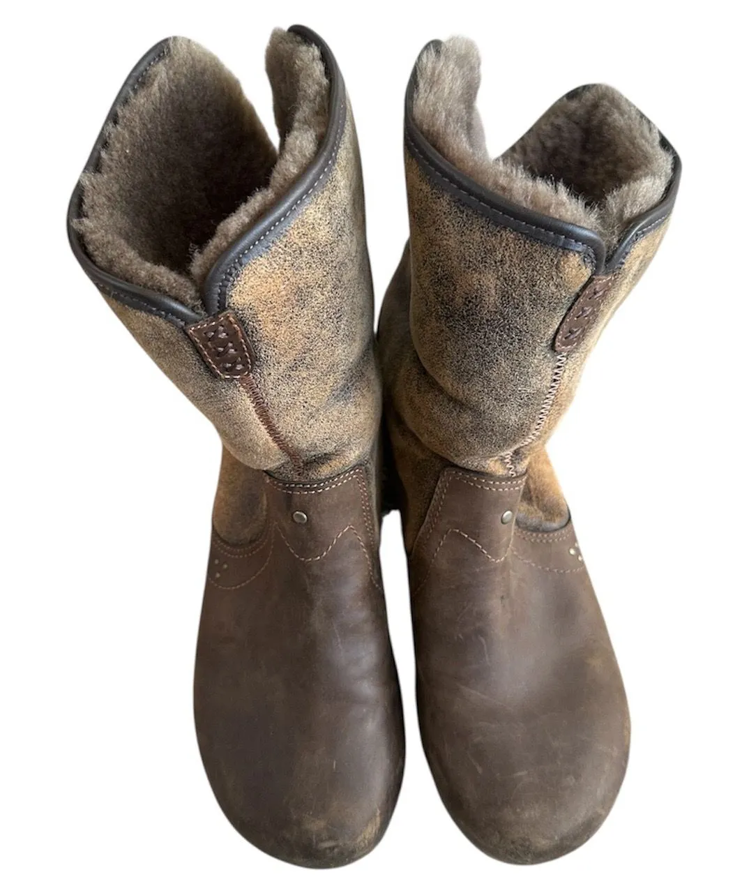 Danskin Brown Leather Shearling Lined Mid-Calf Boots with Rivets & stitch detail Size 42(10.5-11) - $50 (75% Off Retail) - From Jamila