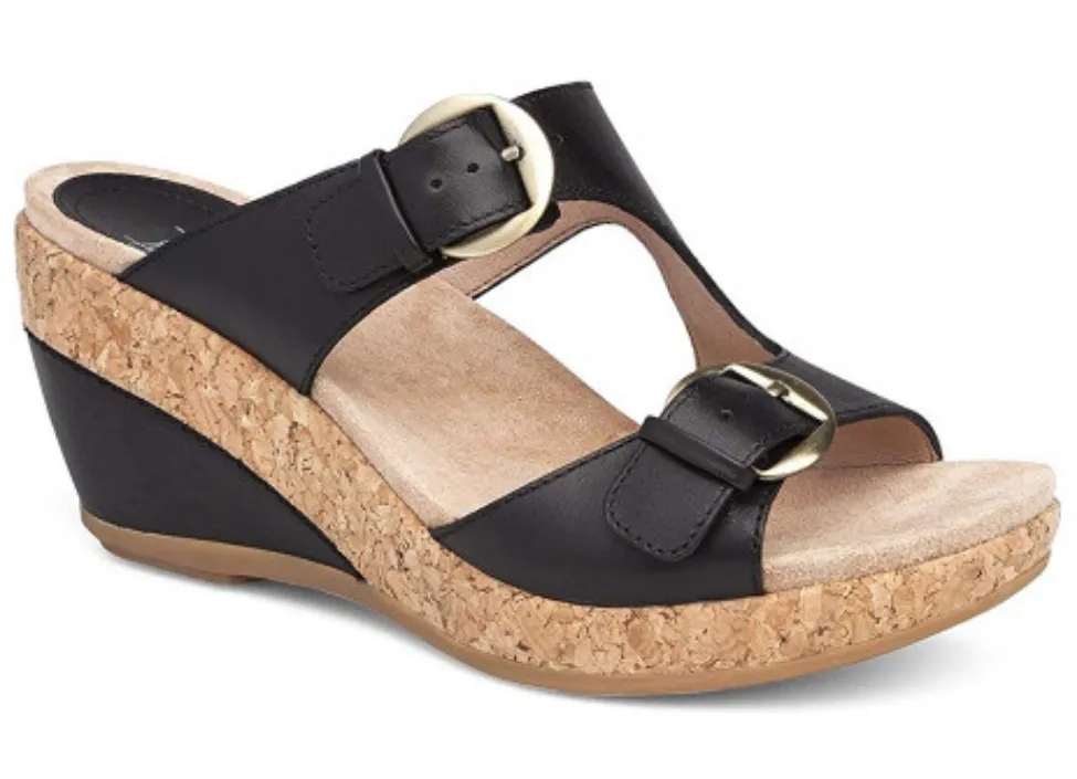 . Genuine leather upper, buckle adjustable straps, open toe, cork midsole, platform, wedge heel, rubber soles with great tread. Great condition! Spring Summer Footwear Retro Classic Neutral Casual Comfy Comfortable Comfort Shoes