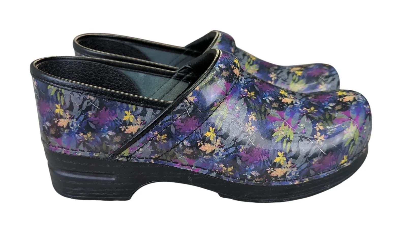 Style: Clog Department: Women Type: Casual Upper Material: Leather Toe Shape: Closed Toe Model: Professional Clogs Heel Height: High (3-3.9 in) EU Shoe Size: 42 Keywords: Dansko clogs, professional clogs, leather clogs, floral clogs, slip on shoes, comfort shoes, size 42, womens shoes, work shoes, nurse shoes, orthopedic shoes, comfortable footwear, printed clogs, leather upper, durable shoes Thanks for checking out my store! I have lots of items available to bundle. Happy to accept offers!