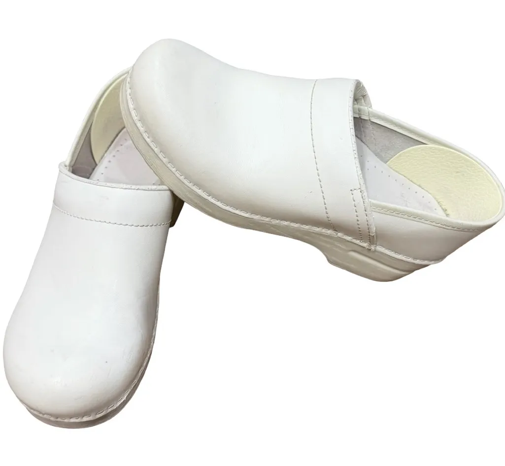 โ Nursing Shoes ๐ Description: Classic Dansko Professional clogs in white box leather, size EU 39. These are a popular choice for nurses, healthcare workers, chefs, and anyone who needs reliable all-day comfort and support. Features a durable leather upper and signature rocker sole for reduced foot fatigue during long shifts. In good pre-owned condition with some visible staining/marks on the leather, all clearly shown in the photos. Structurally solid and plenty of life left. Great budget-friendly option for work shoes! ๐ค ๐ Features: Brand: Dansko Model: Professional clog Color: White (box leather) Size: EU 39 (approx. Womenโs US 8.5โ9) Slip-on clog style with closed toe & open back Supportive rocker-bottom sole Great for nursing, medical, restaurant, or work wear Condition: Good (cosmetic staining present โ see photos) โ ๐ Keywords: Dansko clogs, Dansko professional, nursing shoes, medical clogs, white clogs, work shoes women, comfort shoes, hospital shoes, chef shoes, leather clogs, size 39 shoes, EU 39, orthopedic shoes, slip resistant clogs, healthcare footwear ๐ฅ Hashtags: #Dansko #NursingShoes #WorkShoes #ComfortFootwear #MedicalClogs