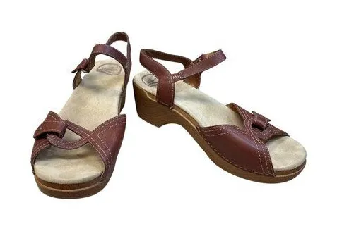 These block wedge Dansko sandals are designed with a durable leather upper and supportive wedge sole, these sandals provide comfort and style for women seeking versatile footwear options. Just in time for the warmer months ahead. They are in good condition with minor discoloration on inside area of the leather pointed in the pics but no defects anywhere else. I ship really fast. SKU8124 • Adjustable buckle strap for a customized fit • Cushioned footbed for all-day comfort • Durable rubber outsoles for traction • Heel height approximately 2.75 inches Heel height = 2.75 inches Features: • Casual spring summer wear Size: Womens 9.5/42 Condition: Pre-Owned Good Minor discoloration pointed in pics but no other defects noted. This item has been cleaned, sanitized and deodorized. Although we clean our items additional cleaning may be needed such as spot treatments, etc.