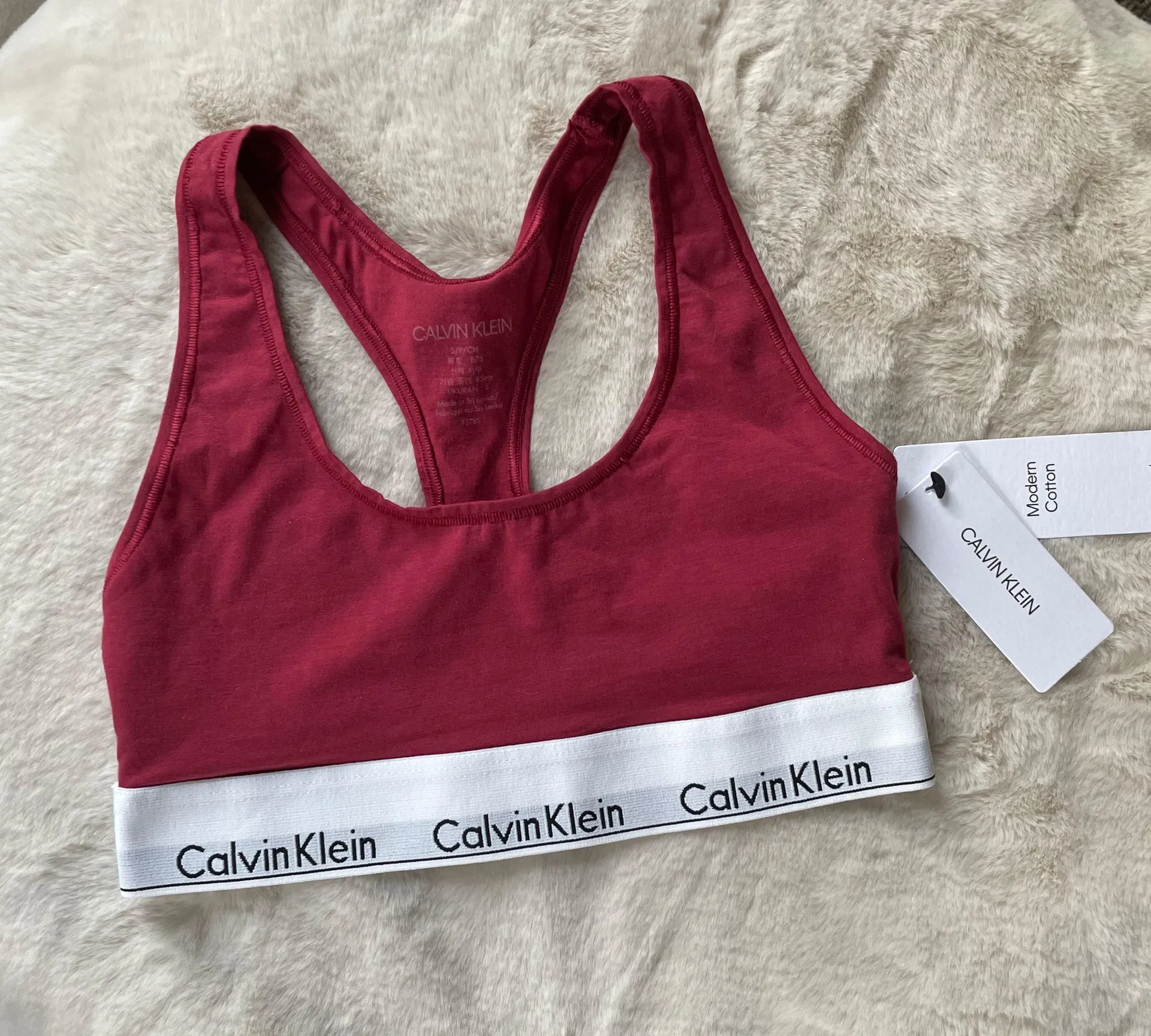 Calvin Klein Modern Cotton Unlined bralette in size small Red with Calvin Klein logo band NO TAGS