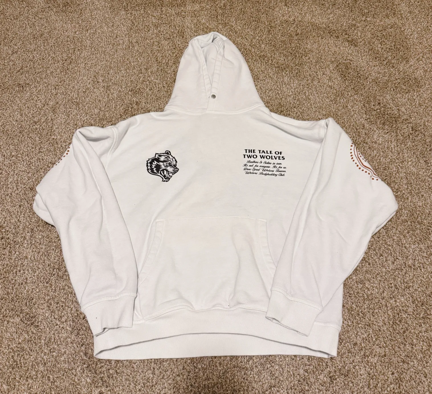 no flaws! worn a handful of times this hoodie is so comfy and it kept me so warm is great for a pump cover at the gym or just wearing as a top! a little oversized but i’m tall so i loved it no longer available on darc sports website #582/1000 pieces made freshly laundered!