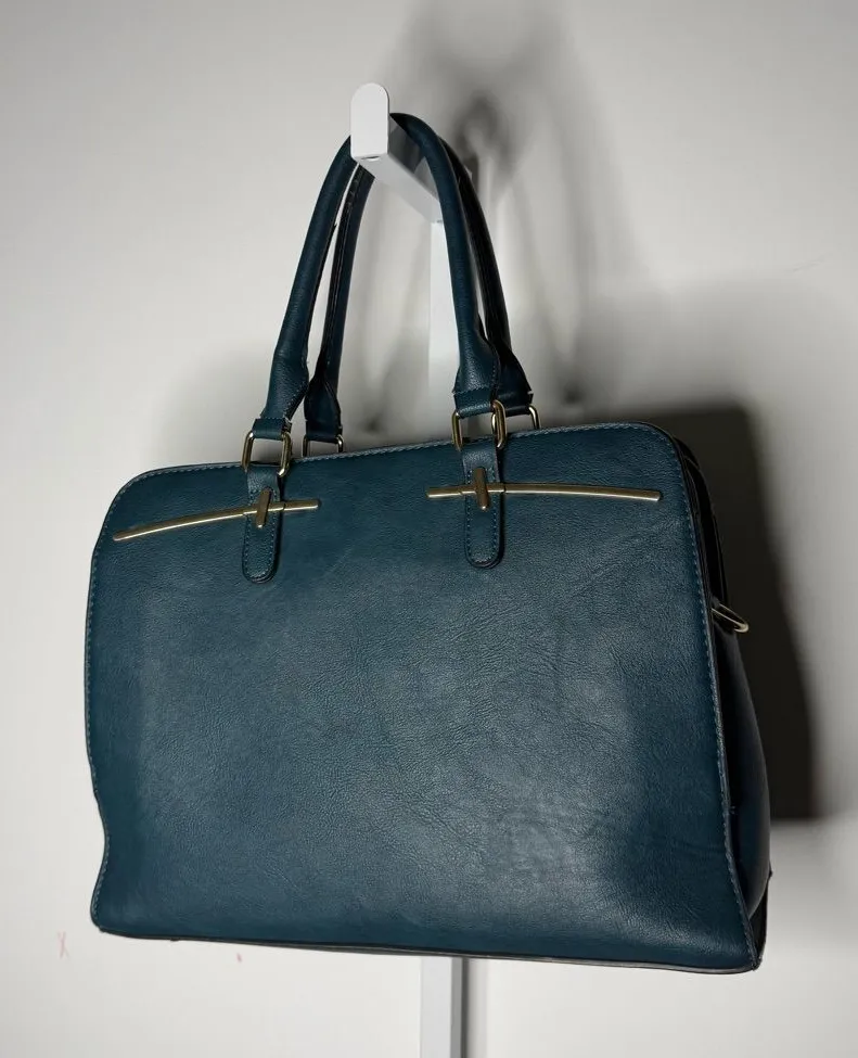 Dasien Green Purse for Women. Leather Shoulder Bag with Gold Accents. Many pockets to separate and organize belongings. Some minor wear on the edges but not very noticeable. In very good condition