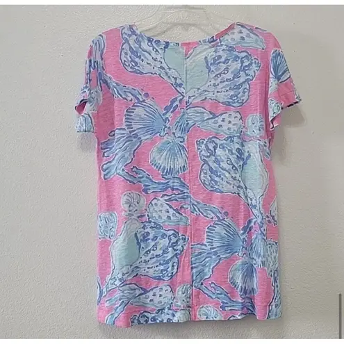 #75-0/1898-1 The Lilly Pulitzer Mikela top in pink pout and barefoot princess blue shells is a styl... Show more