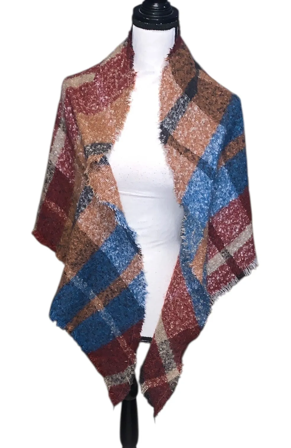 David and Young plaid fringe wrap scarf shawl brown blue red Multiple - $14 - From Kathryn