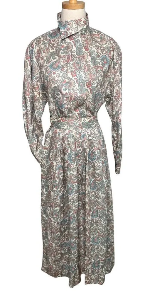 GORGEOUS David Brooks vintage matching button down blouse & maxi skirt secretary set! Lightly padded shoulders. Matching covered buttons. Pleated skirt with side button closure and pockets. Exceptional quality and condition! Just stunning. Made in the USA back in her day Measures flat approximately Shoulder 18" Chest 21 Sleeve 21 Links 26 Waist 13 Length 35 •Size: fits modern SMALL! •Condition: Excellent vintage •Color: blue pink tan brown coral peach off-white Bundle for combined shipping! Pictures are part of the description. Color may vary by screen. Sizes vary between designers. ALL preowned items can be expected to show normal signs of wear. Smoke free, DOG FRIENDLY home. tags: vintage preppy retro office secretary business boss meeting cottage style cottagecore grandmillennial coastal shabby chic mom granny grandma grannie spring fall autumn transitional prairie prairiecore farmcore tradwife traditional classic