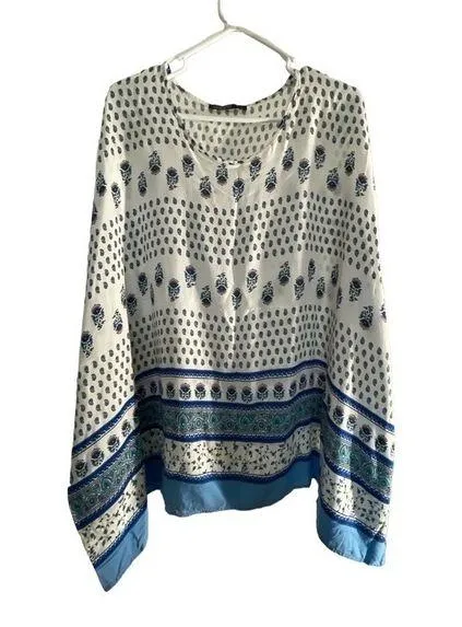 David Jones White Blouse Blue Floral Paisley Bohemian Size Large EUC #4016 - $29 - From Vir