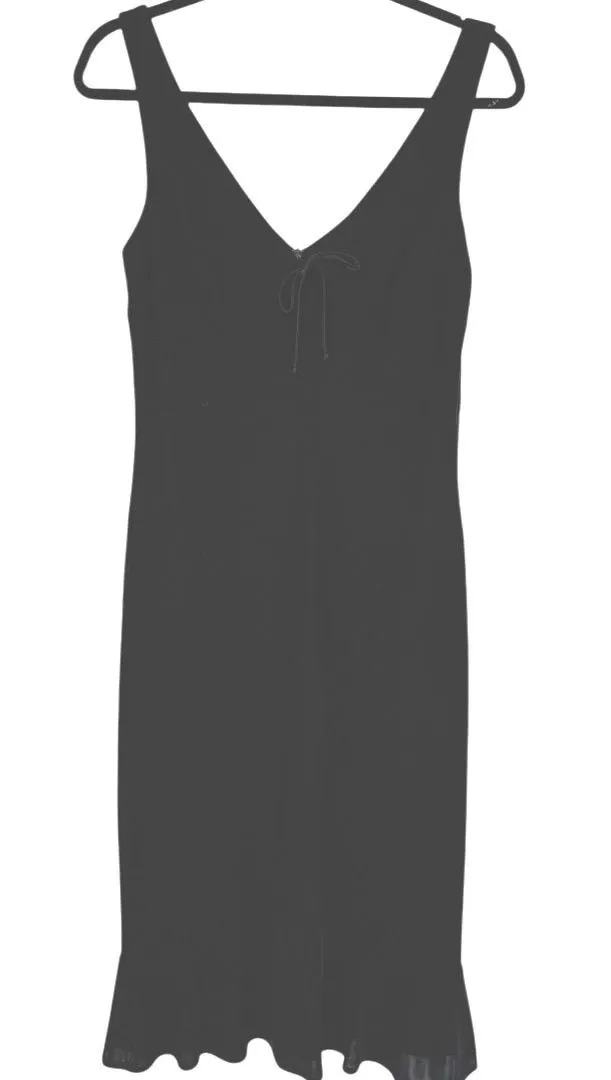 David Meister Black Sleeveless Babydoll Midi Dress. Size 6. 80% poly, 16% nylon, 4% spandex Approx measurements when flat Pit to pit 18" Shoulder to hem 44.5" Style: Sheath, Bodycon Dress Length: Midi Department: Women Sleeve Length: Sleeveless Pattern: Solid Occasion: Party/Cocktail, casual Material: Polyester Neckline: V-Neck Season: Summer, Spring Closure: Zip Accents: Bow Features: Stretch Keywords: David Meister dress, black midi dress, babydoll dress, Whimsigoth, romantic, sleeveless dress, v neck dress, tie front, ruffle hem, elegant, cocktail dress, party dress, evening wear, classic, sophisticated