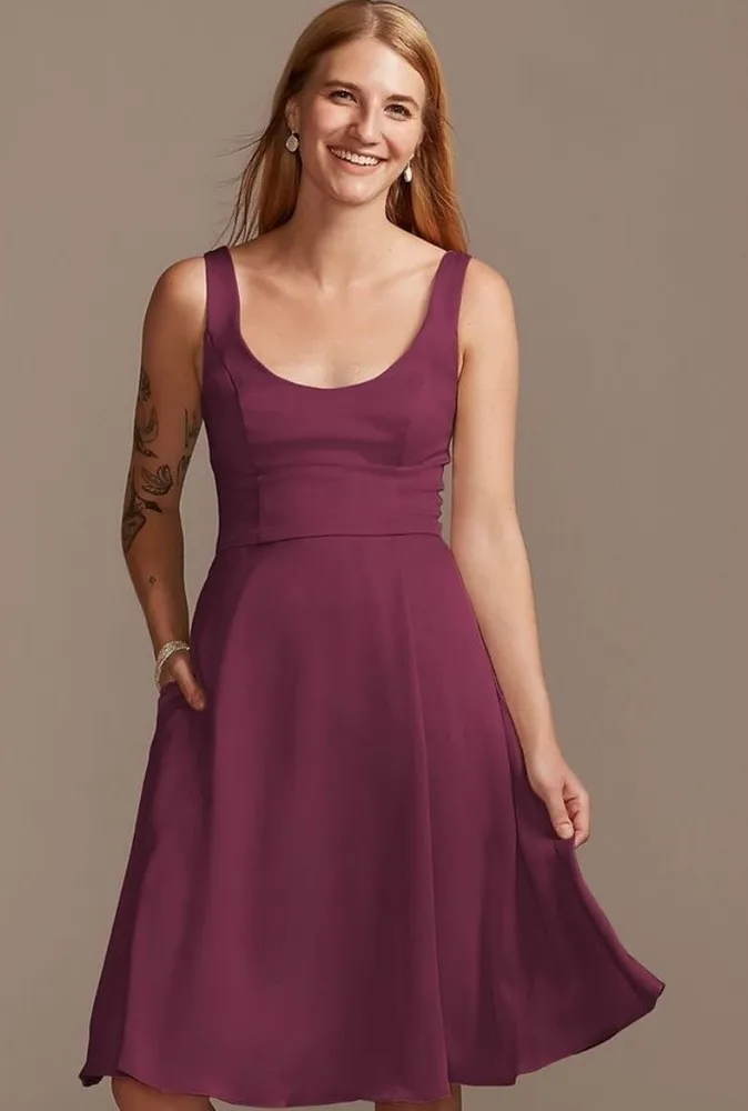 DAVID'S BRIDAL‎ crepe-back satin scoop tank short bridesmaid dress Size 10 NWT Purple - $55 New With Tags - From Amanda