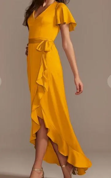 Brand New With Tags DAVID’S Bridal Dress Flutter Sleeve Crepe Satin Ruffle Bridesmaid Dress STYLE#... Show more