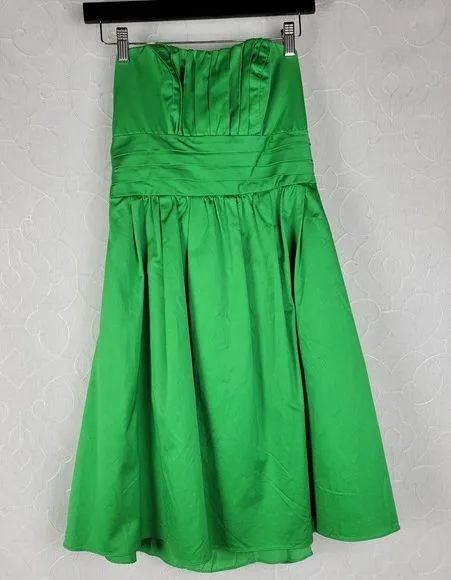 David's Bridal Green Cotton Satin Mini Strapless Ruched Bridesmaid Dress Size 4 Product Description... Show more