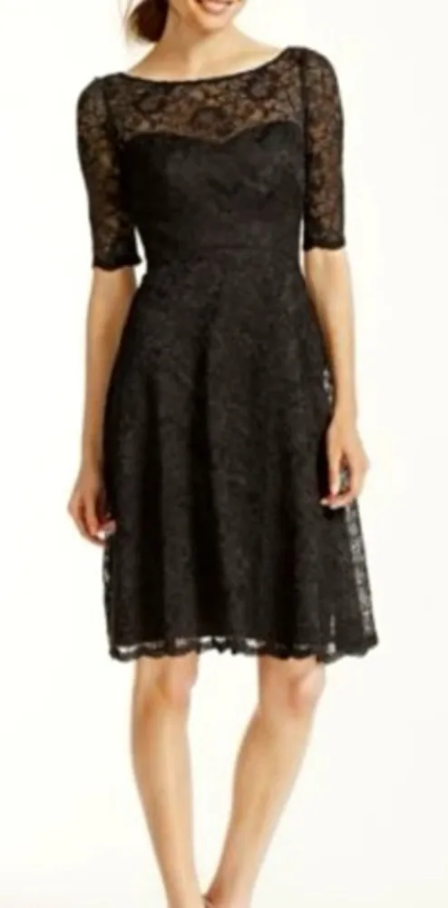 All over lace, lined except the sleeves, deep V back. Measurements when laid flat: Waist 16” Pit to... Show more