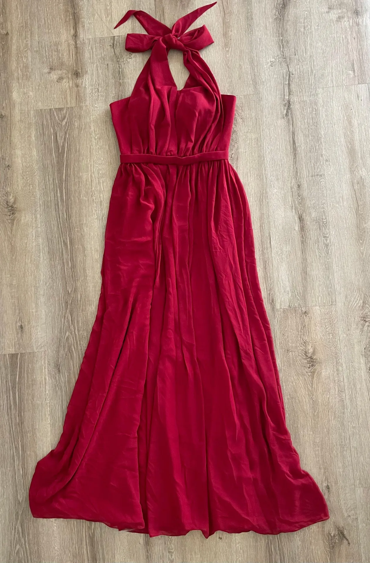 NWOT burgundy halter prom dress S. Great quality material. Flattering neckline it can be tied in man... Show more