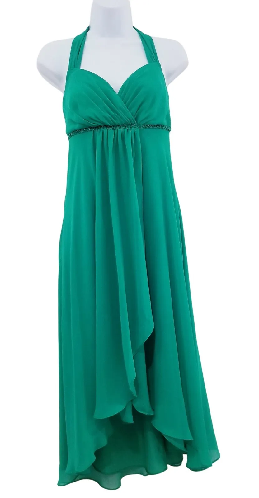 David's Bridal Rhinestone Halter Emerald Dress size 2 High low, sleeveless empire waist, sweetheart... Show more