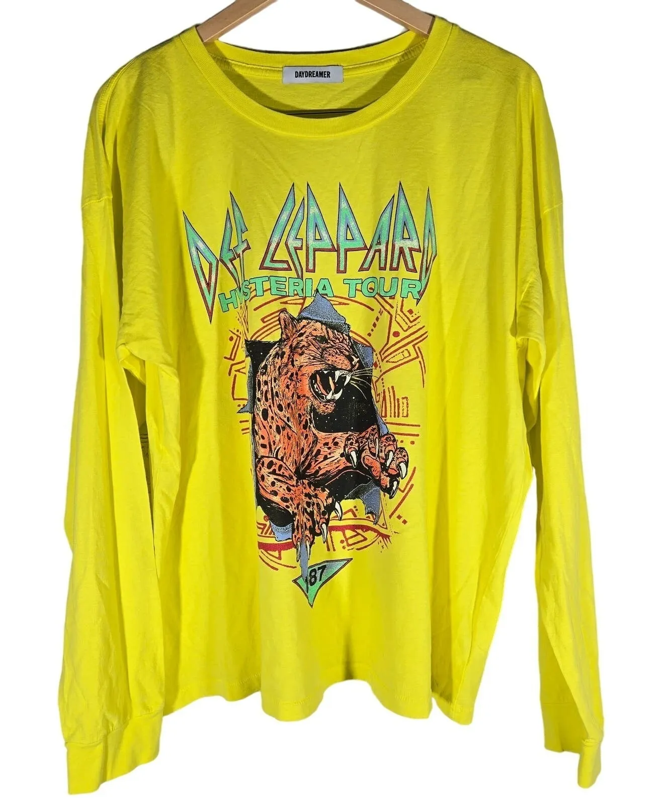 DAYDREAMER Def Leppard Hysteria Tour Long Sleeve T Shirt Yellow Cotton M Has a small hole on front... Show more