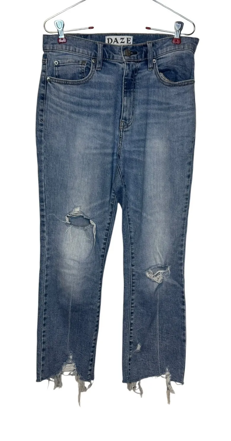 Brand- Daze Material- 98% Cotton/2% Spandex Size- 27 Color- Blue D6201VOT-PAS Splatter Straight Leg Measurements: Waist- 28" Inseam- 26" Rise- 11" Leg Opening- 7.5" Condition: Pre-owned, very good used condition. See Photos. Thank you for Shopping. Feel free to check out my listings for various preloved items.