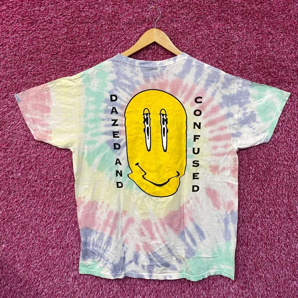 Dazed and Confused Acid Trip Smiley Movie Promo Tie Dye L generally measures 24 inches pit to pit and 28 inches long never worn first hand overstock great condition with an amazing graphic