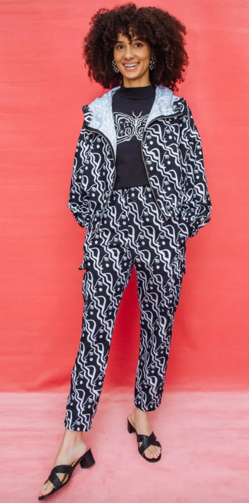Dazey LA Waterfall Woman Black & White Graphic Print Elastic Waist Cargo Pants XS. Cargo Pants Details – Cutest cargo fit, designed to be fir friendly with elastic waistband. Made fully in LA using study yet soft windbreaker fabric. High rise waist, cargo pockets, waistband pockets, and a tapered elastic leg finish. black and white female face print. waist is 12.5" across, inseam 27".