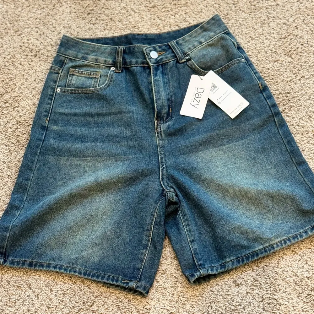 Brand new with tags! These Dazy wide-leg denim shorts are a versatile closet staple. Featuring a natural mid-rise waist, regular fit, and zipper fly, they deliver a flattering silhouette with just the right amount of relaxed movement. • Brand: Dazy • Size: M • Color: Dusty Blue (Medium Wash) • Fabric: 69% Cotton, 15% Polyester, 13% Viscose, 3% Modal • Fit Type: Regular fit, non-stretch • Details: Button closure, zipper fly, 5-pocket style • Length: Short, wide-leg • Body: Unlined • Care: Machine wash cold, do not dry clean • Condition: NWT • Original Retail Price: $28 Why It Pops: The ultimate festival, concert, and K-pop inspired denim shorts! The wide-leg cut is flattering and comfortable, perfect for dancing, walking, and styling year-round. Pair with tights and boots for a chic fall or winter look or keep it casual with sneakers in warmer weather. Style It With: • Cropped tank + sneakers for a casual streetwear vibe • Oversized sweater + ankle boots for a cozy fall look • Graphic tee + combat boots for a festival or concert outfit Hashtags: #Festival #ConcertOutfit #FestivalOutfit #Streetwear #WideLegPants #WideLegTrousers #CasualStyle #CasualCool #90sStyle #90sStreetwear #Y2K #Athleisure #TrendyStyle #EffortlessOutfits #VacationReady #WeekendWear #WeekendStyle #SummerWardrobe #FallOutfit #FallStyle #Layering #CoastalVibes #CoastalGranddaughter #Boho #BohoChic #BohoStyle #BrunchOutfit #Preppy #ClassicWardrobe #CapsuleWardrobe #Minimalist #Minimalist (116)