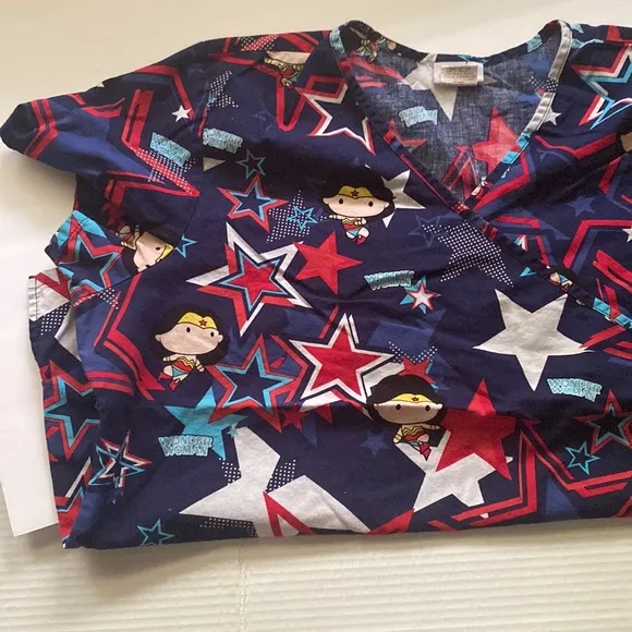 Great, pre-owned condition. Two large front pockets. V-neck. Size 2XL. P2P is approximately 26” across laid flat. Length is 28”. Colors blue, black, white, red, and yellow. 100% cotton. From smoke/pet free home. Offers welcome!