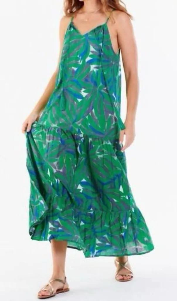 In excellent used condition, looks like it was worn 1x -adjustable neckline -100% cotton -loose and full dress -palm/organic pattern -Womens size M Dear John (sold at Anthropologie)