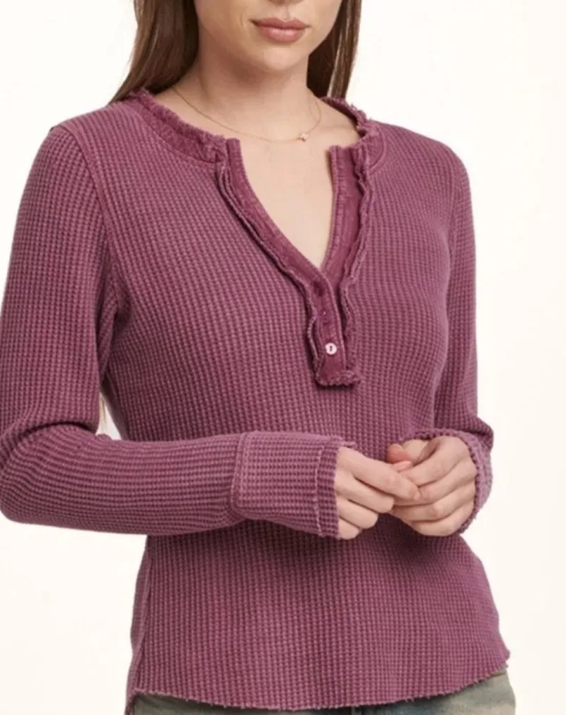 Dear John Plum Berry Waffle Knit Cotton Blend Raw Hem Henley Long Sleeve S Purple - $19 - From Abigail