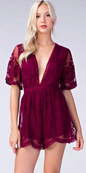 Deep V Short Sleeved Romper Red - $25 (68% Off Retail) - From Maeve