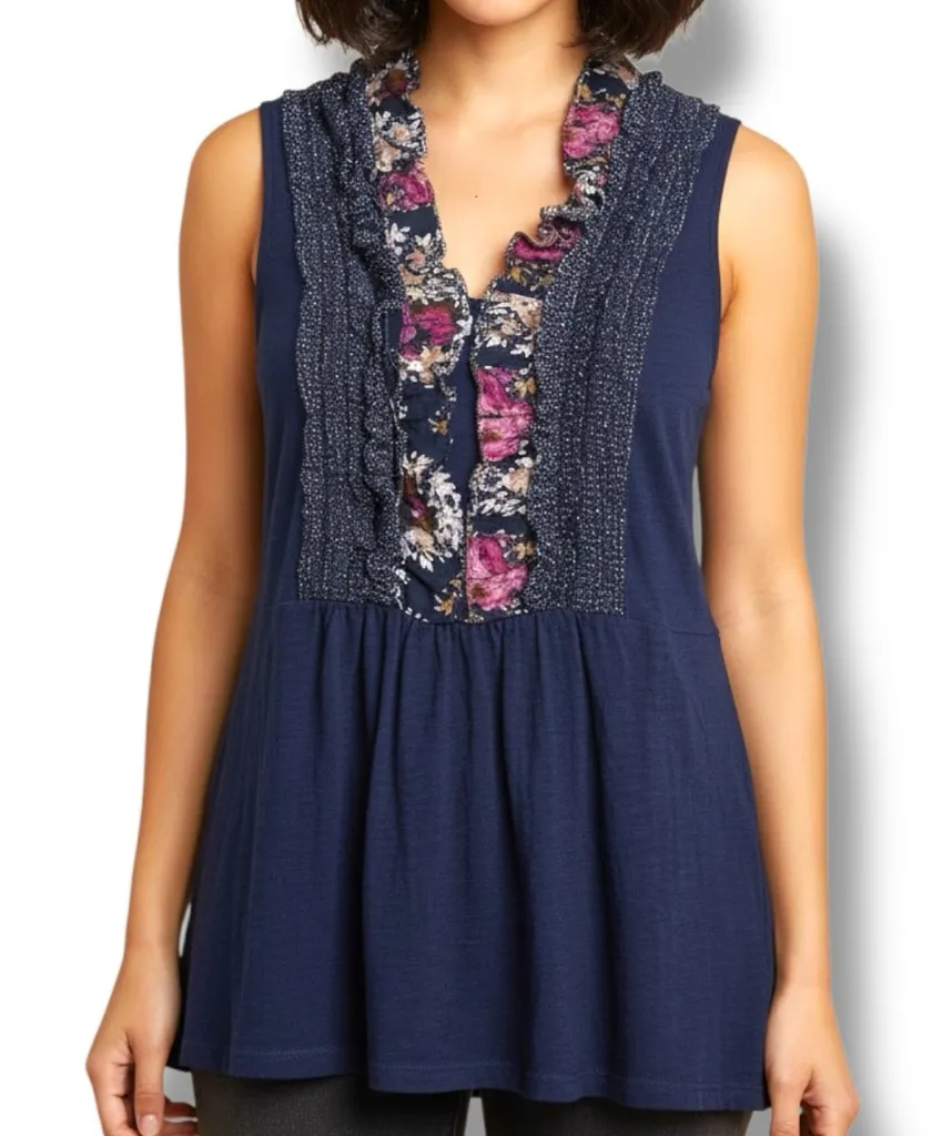 Size XS • V‑Neck • Gently Used Condition: Gently used with no major signs of wear Overview This Deletta by Anthropologie sleeveless top combines playful detailing with a flattering silhouette. Designed with a mix of floral and dot patterns, it brings a touch of feminine charm while remaining versatile enough for both casual and dressier looks. Key Features Size: XS Style: Sleeveless V‑neck top Pattern: Floral and dot mix Details: Ruffle trim along the neckline and shoulders Fit: Soft, lightweight, and tailored for a flattering drape Why You'll Love It The V‑neckline and ruffle accents add a romantic touch without feeling overly formal. The mixed‑print design creates visual interest and pairs well with denim, skirts, or layered looks. Perfect for warm weather, but also great under a cardigan or jacket when temperatures drop. Ideal For Everyday wear Casual outings Brunch dates Layered office outfit
