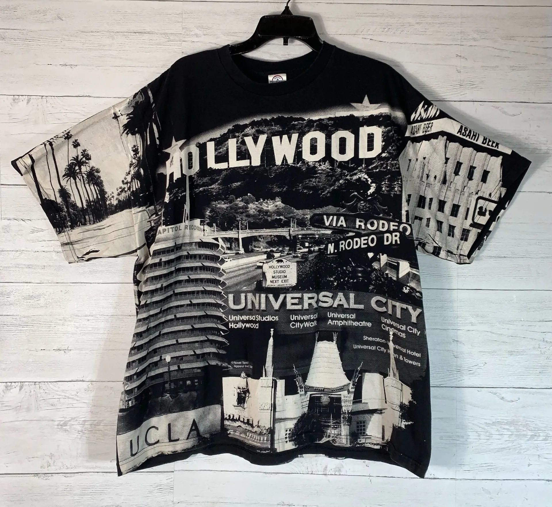 2006 Hollywood Universal City T Shirt 2XL Black White All Over Print Size XXL - $40 - From kenia