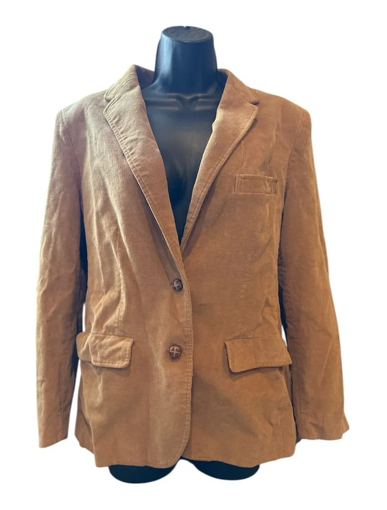 DeMura corduroy blazer jacket in a warm tan/camel color. Classic tailored fit with notch lapels, flap pockets + back vent. Great for fall layering, office, academia, preppy, vintage vibes. PTP: ~21” (about 42” bust) Condition: Good pre-owned condition. corduroy blazer, vintage blazer, tan jacket, academia style, preppy, fall jacket, soft corduroy, made in Japan, size 18, plus size blazer
