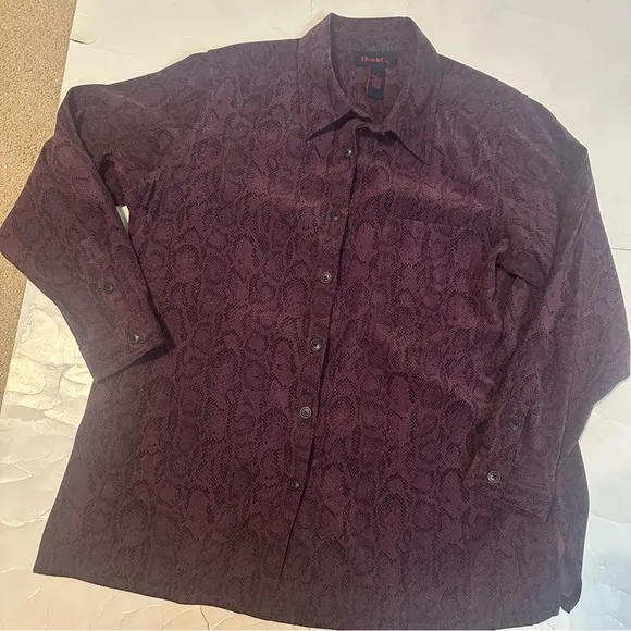 Denim&co 1X Snakeskin Dark Purple Moleskin Stretch Big Shirt Button Down Western - $25 - From Ashley