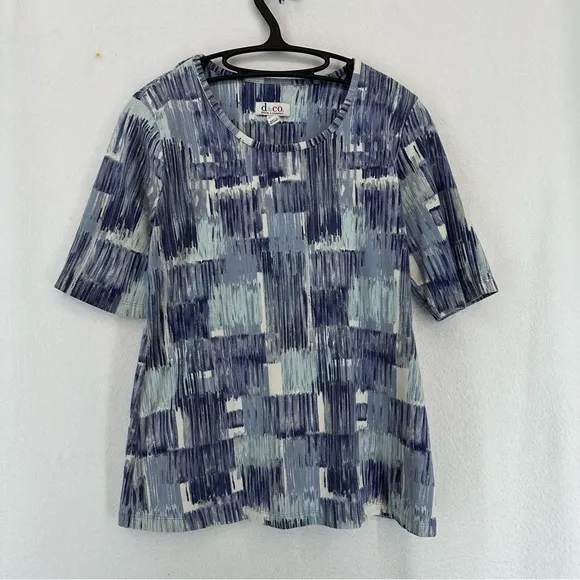 Denim & Co Abstract Print Short Sleeve Blouse Shirt Womens XS Blue White - $11 - From Reaper