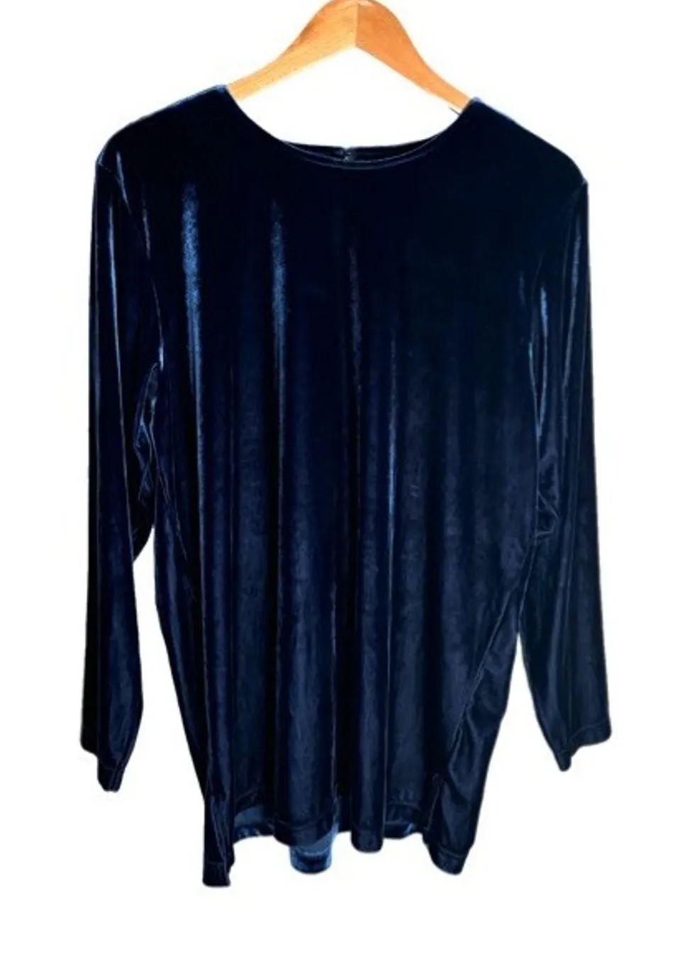 Gorgeous vintage gem! Blue velvet long sleeve top with button closure in back. Polyester and spandex blend. Size large: pit to pit-24”, length-30”. Excellent used condition, no flaws! Open to offers. Same or next day shipping! Velvet blue 90s party holiday fall winter long sleeve