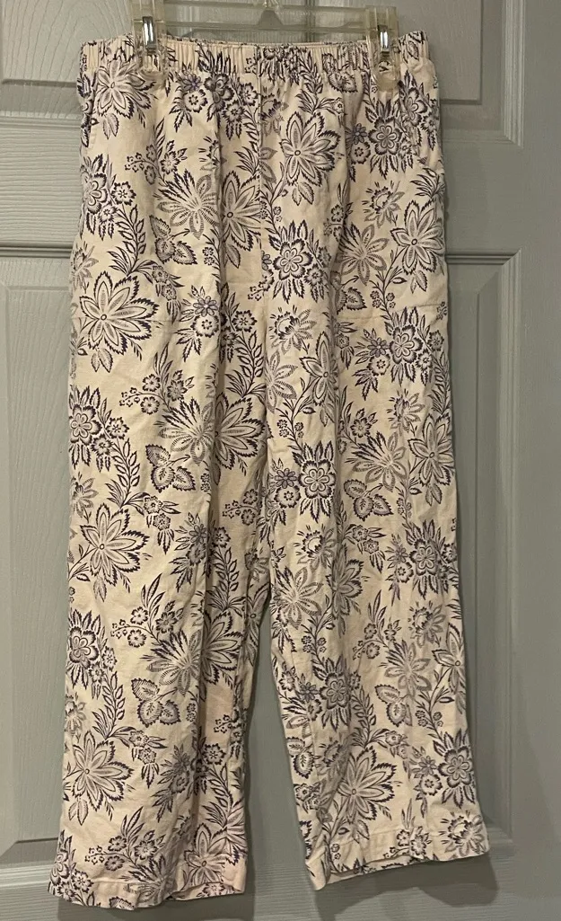 Denim & Co Women's Medium Linen Rayon Floral Cream Blue Capri Cropped Pants - $13 - From Camara