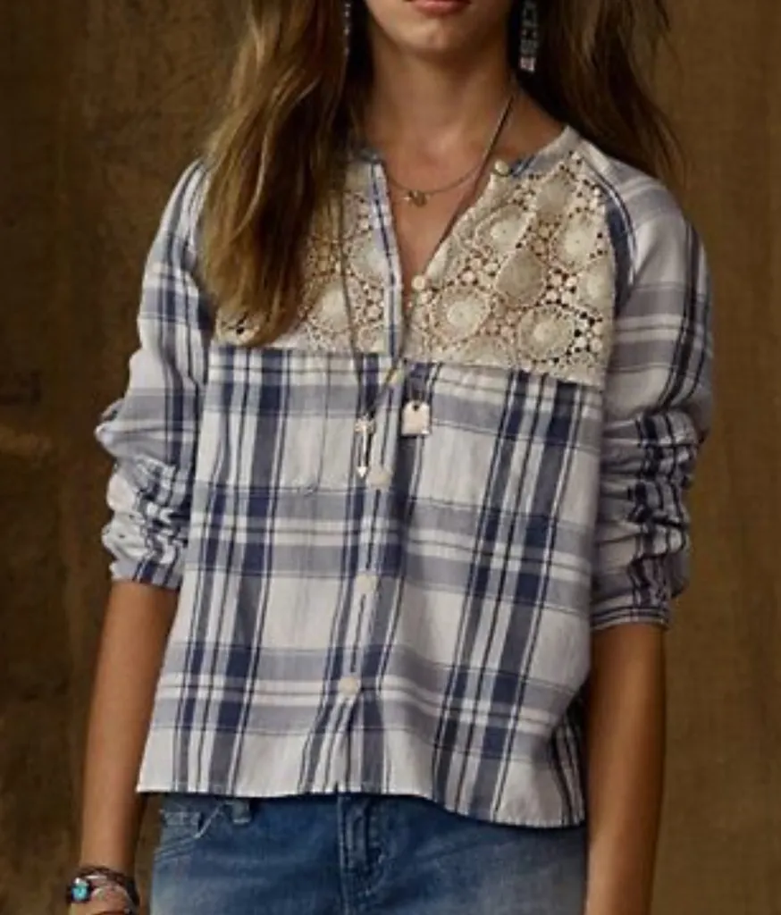 Denim & Supply Ralph Lauren plaid shirt with a lace yoke XL Blue - $30 - From Lauren